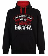 Laat de wijn stromen dit kerstseizoen! Deze zwarte kersthoodie met de speelse tekst **"I'm Dreaming Of A Wine Christmas"** is perfect voor iedereen die van kerst én wijn houdt. Met de opvallende rode trekkoorden en comfortabele capuchon is dit je nieuwe favoriete winteroutfit.
